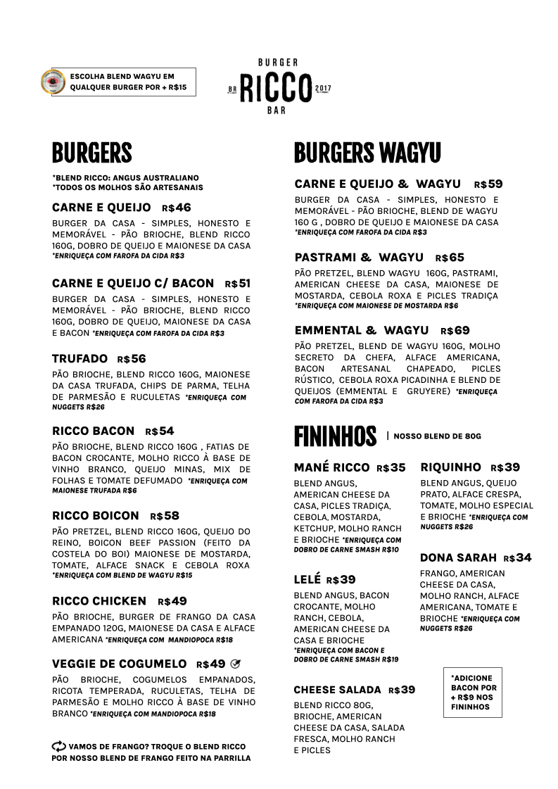 Welcome to Ricco Burger - Pega e Vaza, a culinary gem nestled in Asa Norte, Brasília. This standout burger joint offers a delectable menu featuring gourmet Wagyu burgers that are both simple and memorable. Indulge in the Wagyu Burger da Casa, crafted with a rich, 160g Wagyu blend, nestled in a soft brioche bun, or try the mouthwatering Pastrami & Wagyu on a pretzel bun, topped with American cheese and house-made mustard mayo.
